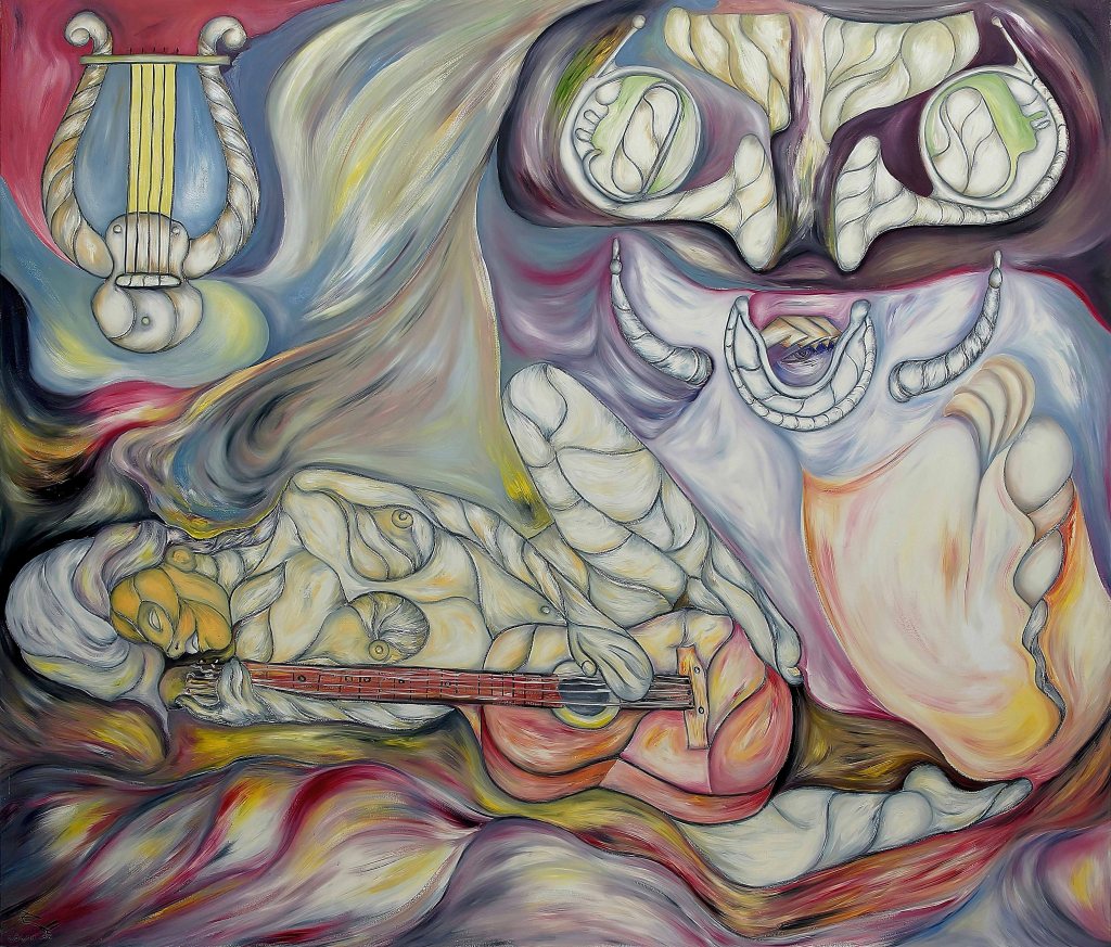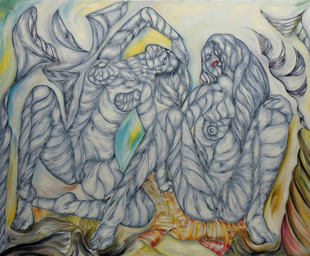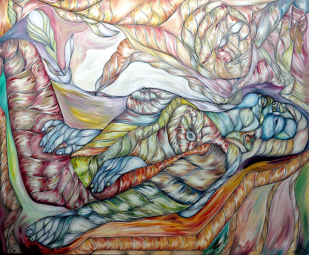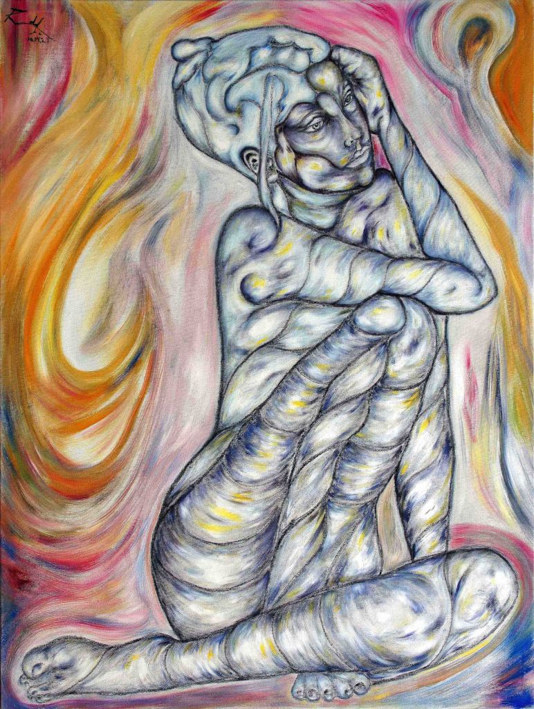 Rope Motif: The “Rope” in his artwork often symbolizes connection and continuity. It is a recurring element that ties different parts of the composition together, creating a sense of unity and flow.