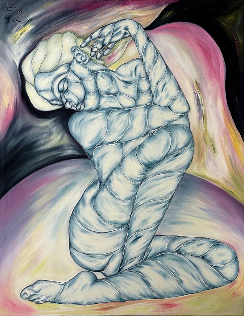 Rodolfo Valentino Ortiz (RVO) is known for his unique “Cubist Rope” technique and style, which blends elements of Cubism with his own innovative approach. Here are some key aspects of his technique.