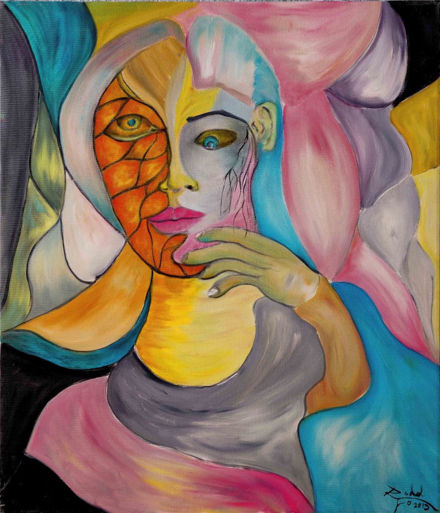 Cubist Influence: RVO’s work is heavily influenced by Cubism, this involves breaking down objects into geometric shapes and presenting multiple viewpoints simultaneously.